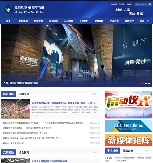 采用藍色為主色調,適合研究所、研究院、專業(yè)機構等使用場景,也可以調整欄目以適合其他網(wǎng)站使用,您可以自由修改模板,制作各類專業(yè)網(wǎng)站